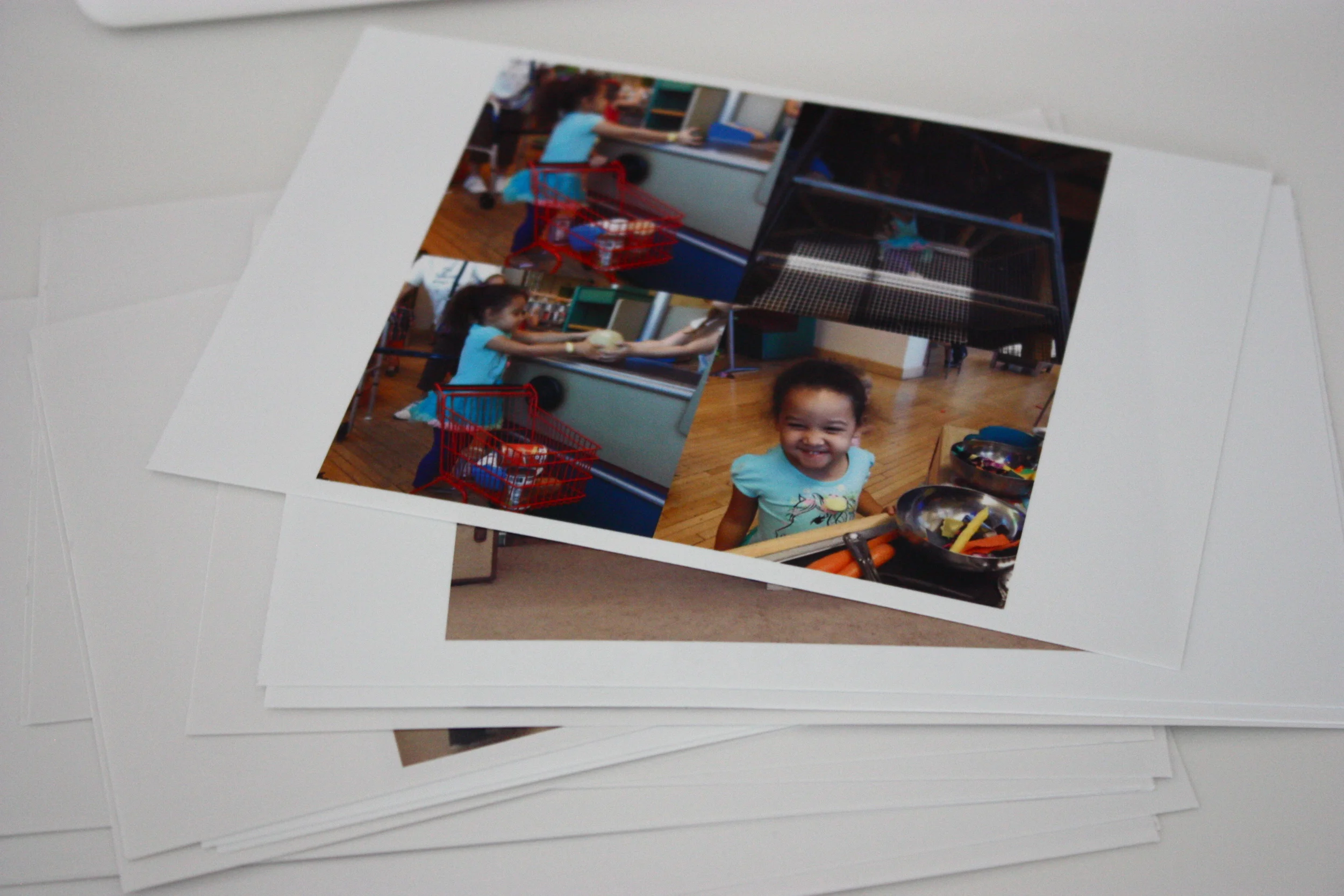 I print all of my photos at home, using my HP Photosmart 7525 printer using regular photo paper. If you have a great printer choosing to print them at home is a lot more cost effective because you can size them smaller and fit more than one photo per page. After printing them I trim some of them down to the size I need them to be.